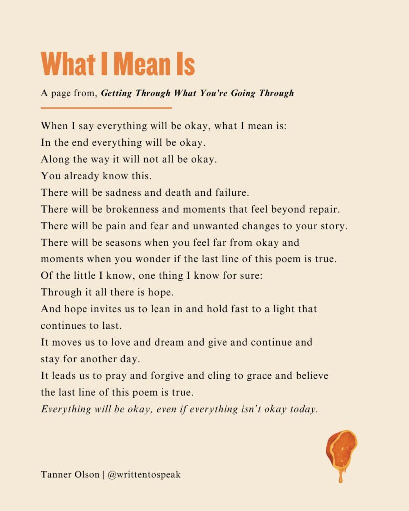 All of those summers of listening, serving, and writing slowly turned into a book—Getting Through What You’re Going Through: Notes and Poems for Hoping and Becoming (Zondervan).