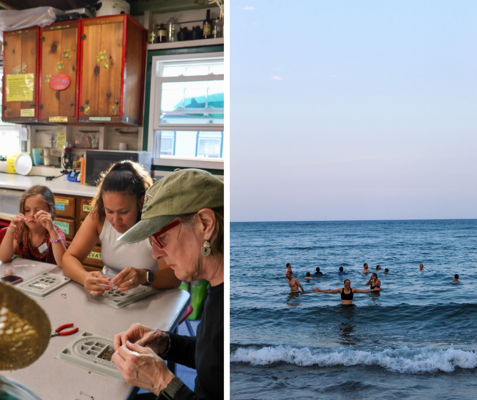 In addition to outdoor play, the well-stocked Craft Shop offers campers of all ages a fantastic opportunity to explore their artistic side. For many, the Craft Shop is their happy place—a space to unwind, chat with friends, and create crafts.